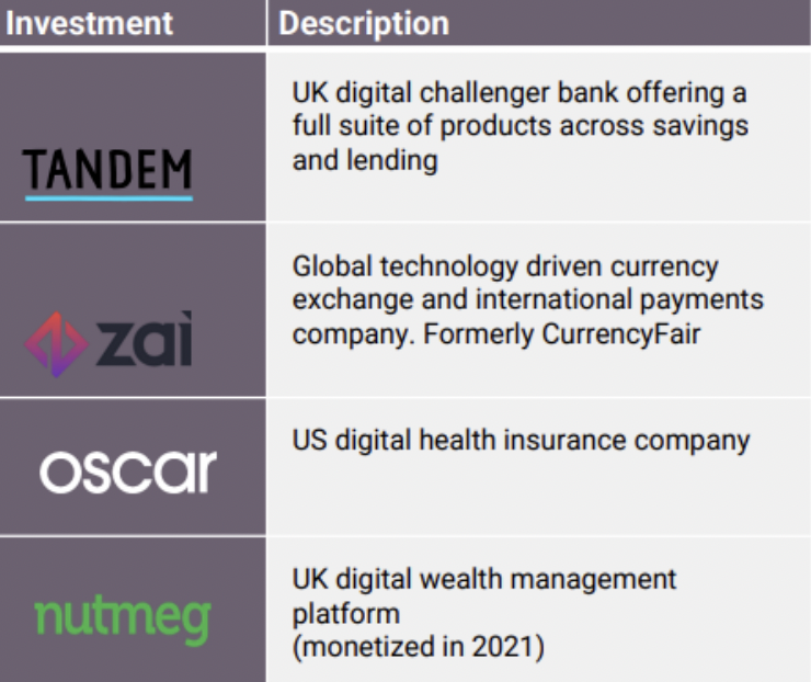 AGBA's Fintech Business engages in investments in startup companies across the United States, Europe, and Hong Kong. While Exhibit 5 illustrates some of the group's investments, we would like to highlight two additional investments not included in the exhibit: Goxip, a fashion media platform based in Hong Kong, and LC Healthcare Fund, a healthcare and healthtech investment fund in the People's Republic of China (PRC). Through its fintech investments, AGBA gains valuable insights that can be utilized to modernize OnePlatform, enhance operational efficiency, and enrich its product offering. Additionally, these investments present the potential for lucrative returns. An example of this success is evident in the sale of its investment in Nutmeg Saving and Investment to JP Morgan for US$139.1 million in June 2021.